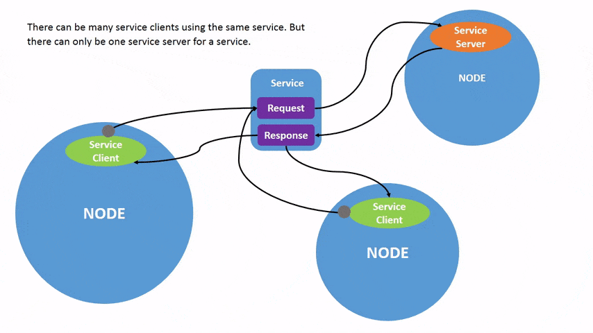 Remember from the first part of this series, services are a node that allows you to give and input to get the desired output. If we want to add values, we can make a service that takes two numbers, sums them, and responds with the sum. Remember, they don’t publish continuously. They only respond when the service is called.